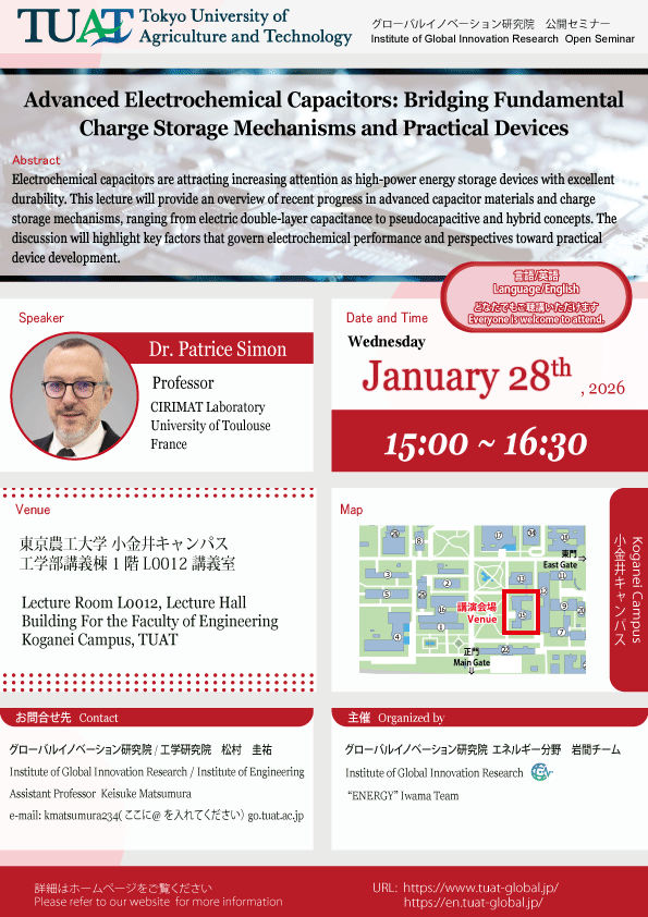 | 主催 | グローバルイノベーション研究院 エネルギー分野 岩間チーム |