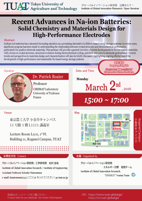| 主催 | グローバルイノベーション研究院 エネルギー分野 岩間チーム |
