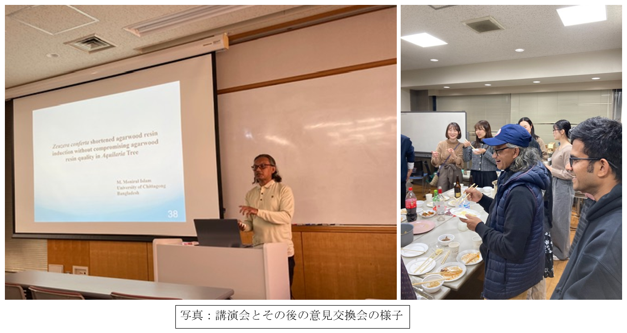 今回は、バングラデシュ・チッタゴン大学のモハマド・イスラム教授を招き、GIRセミナーを開催した。まず、イスラム教授は、新たに取り組んでいる沈香樹脂の生産に関する研究について講演された。