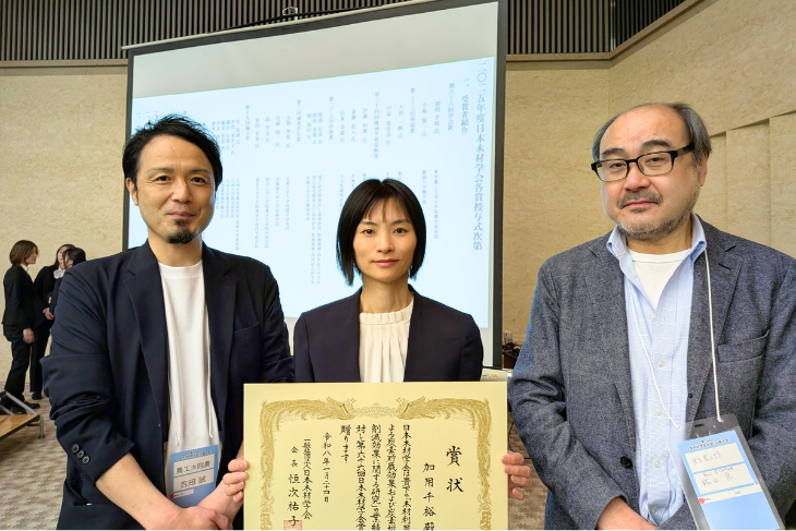 グローバルイノベーション研究院の加用千裕教授が、2026年3月17日に「第66回(2025年度) 日本木材学会賞」を受賞しました。