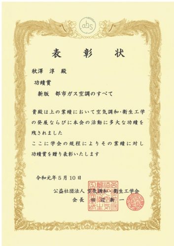 ■受賞名 公益社団法人 空気調和・衛生工学会 功績賞